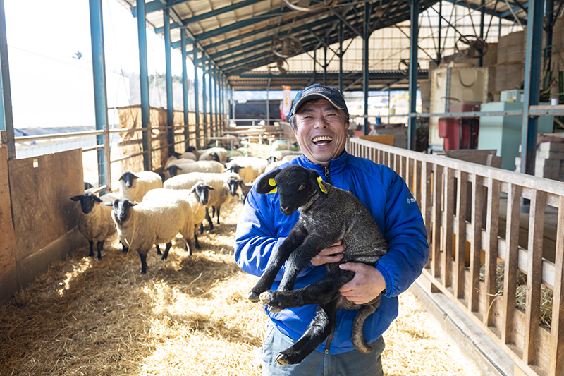 「生産量が増えるにつれて、ねずみにやられてしまったりして商品価値がない飼料が出てくるようになったんだけど、それらを処分してしまってはもったいない。動物を飼えば、食べてくれるかなと思ったのがきっかけだな。平成30年に羊を3頭迎え入れてから段々と増えていき、途中で新しく迎え入れたりもして、現在は90頭くらいに増えているよ。」