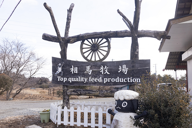 「相馬牧場」の文字の横には、可愛らしい羊のイラストが描かれています。