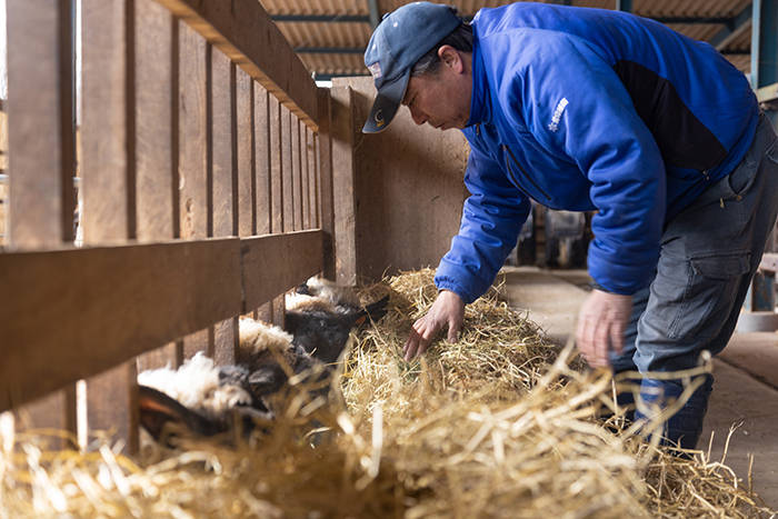 相馬牧場のご主人、相馬秀一さんの始業は朝6時頃。羊たちへの餌やりからはじまります。その餌は、相馬さんが自ら作っている牧草やトウモロコシです。